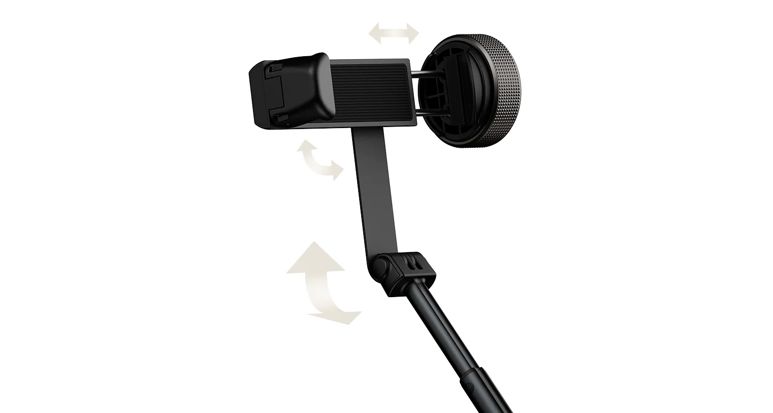 Модель оснащена выдвижной штангой длиной 62 дюйма, что дает больше свободы при выборе ракурса и помогает снимать не только селфи, но и общие планы, видео, прямые эфиры и групповые кадры. Держатель поворачивается на 90 градусов, поэтому можно быстро менять положение смартфона в зависимости от формата съемки.